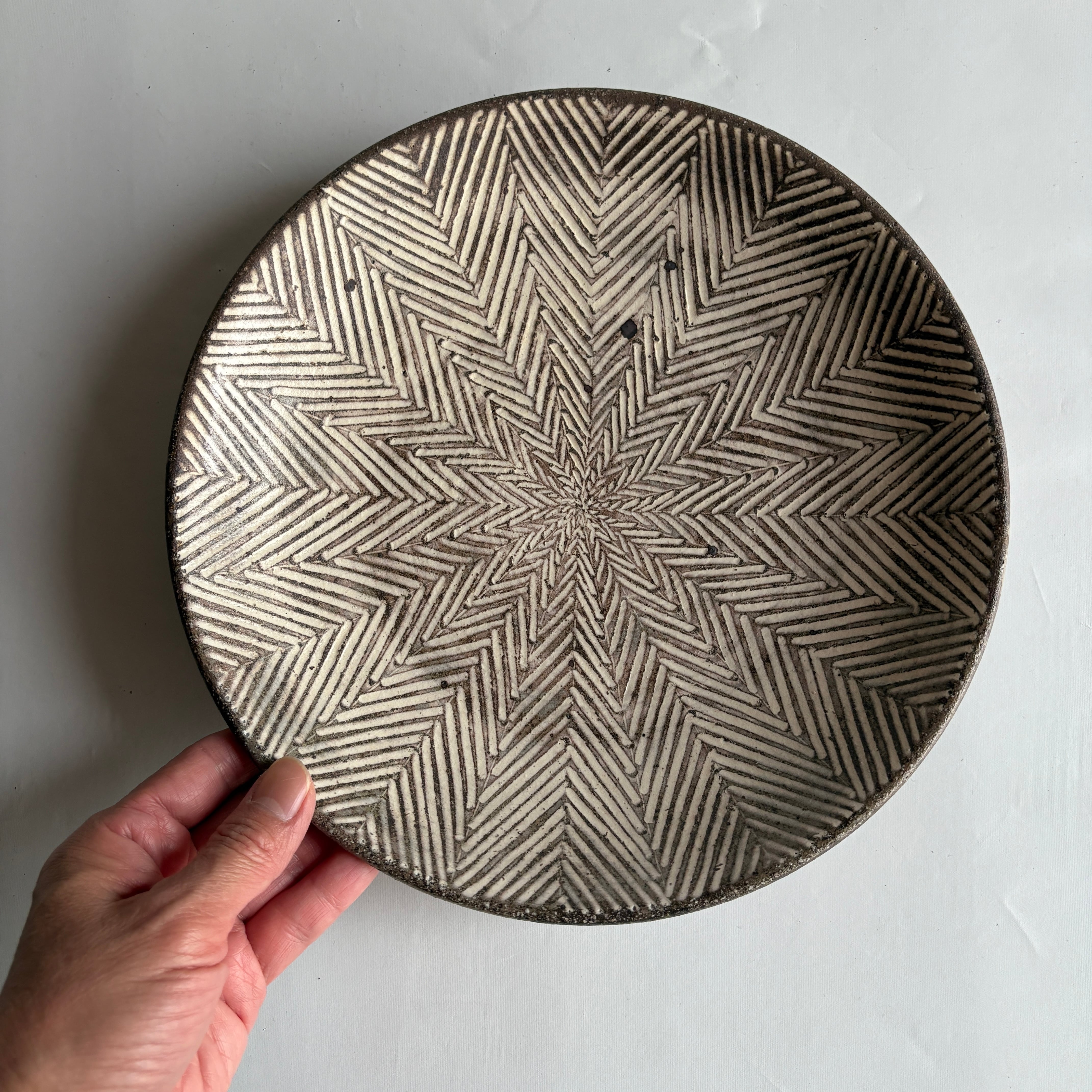 繊細な彫りで、ヘリンボーンと言われる独特の文様を浮かび上がらせています。