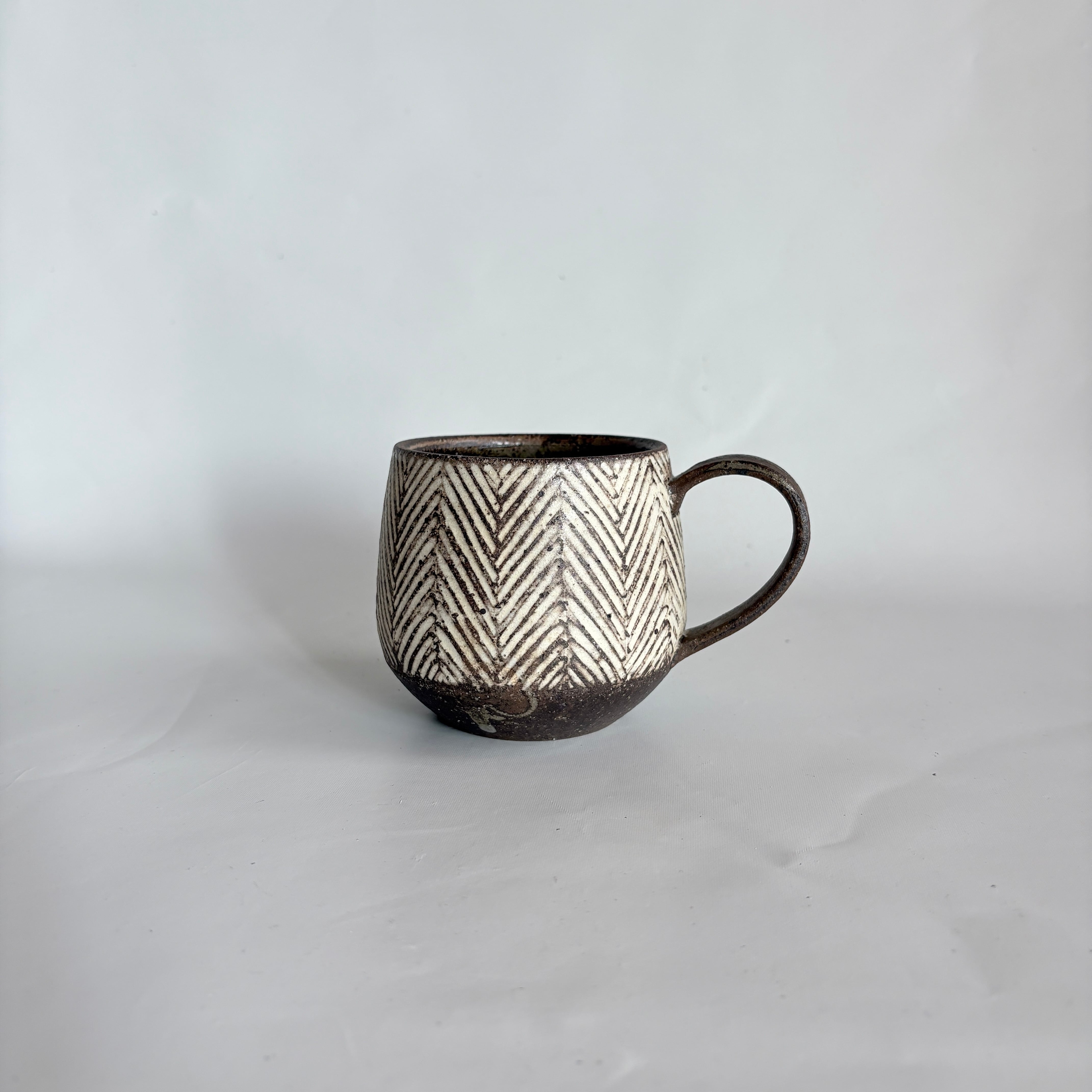 繊細な彫りで、ヘリンボーンと言われる独特の文様を浮かび上がらせています。