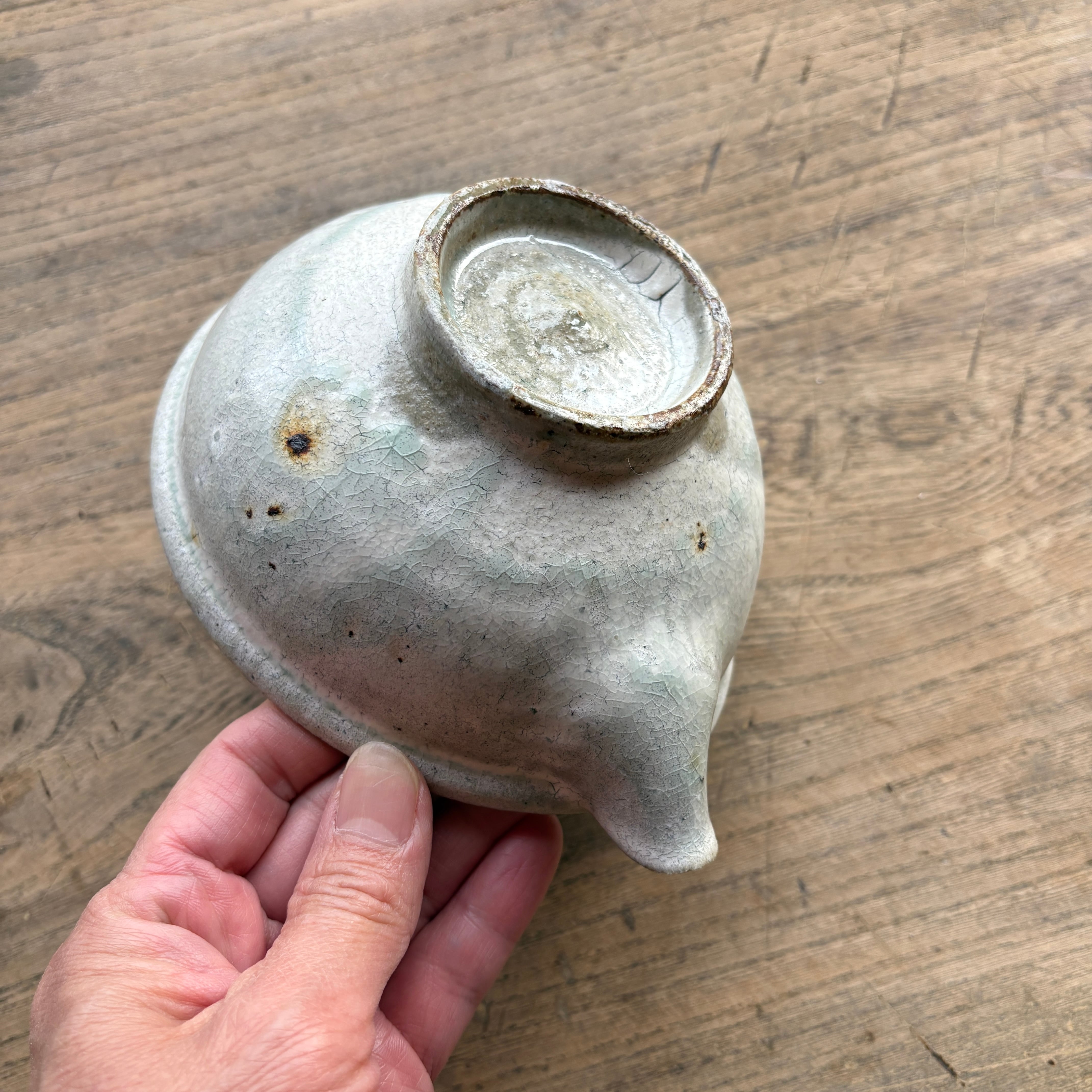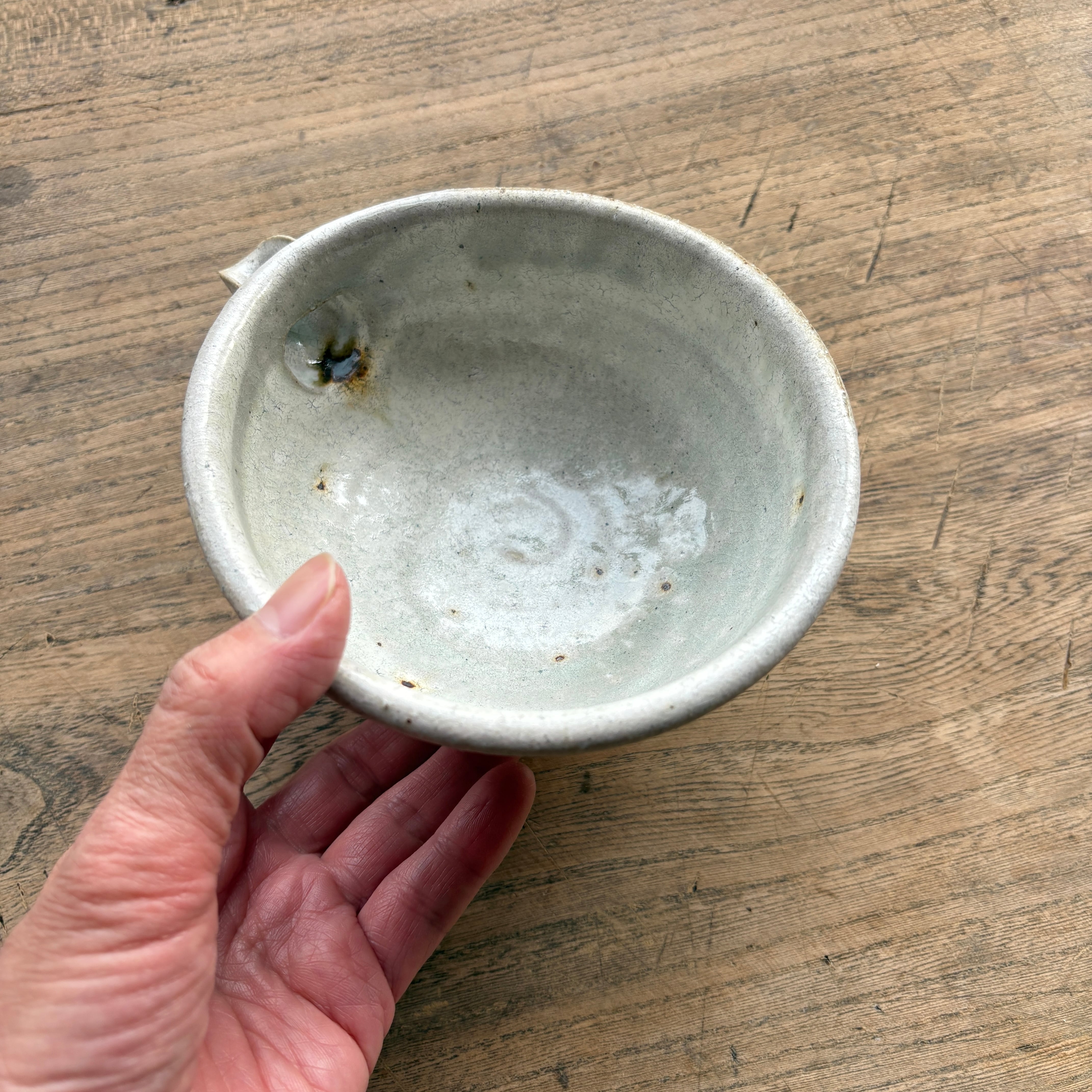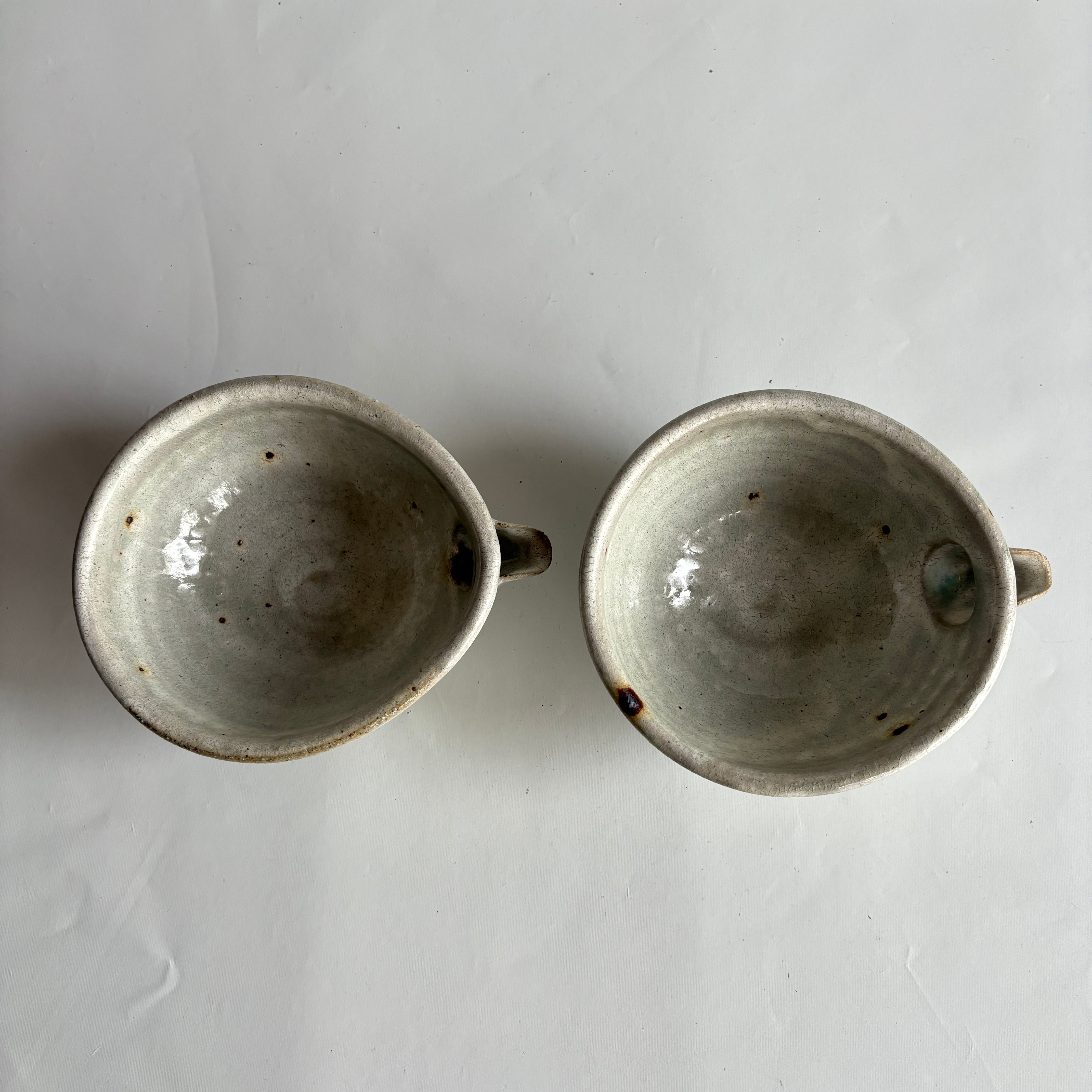 整った佇まいと薄緑に見える釉薬がマッチした美しい作品。釉だまりが見られるものもあります。美味しいお酒が飲めそうですね。お酒にかかわらずいろんな用途にお使いいただけます。