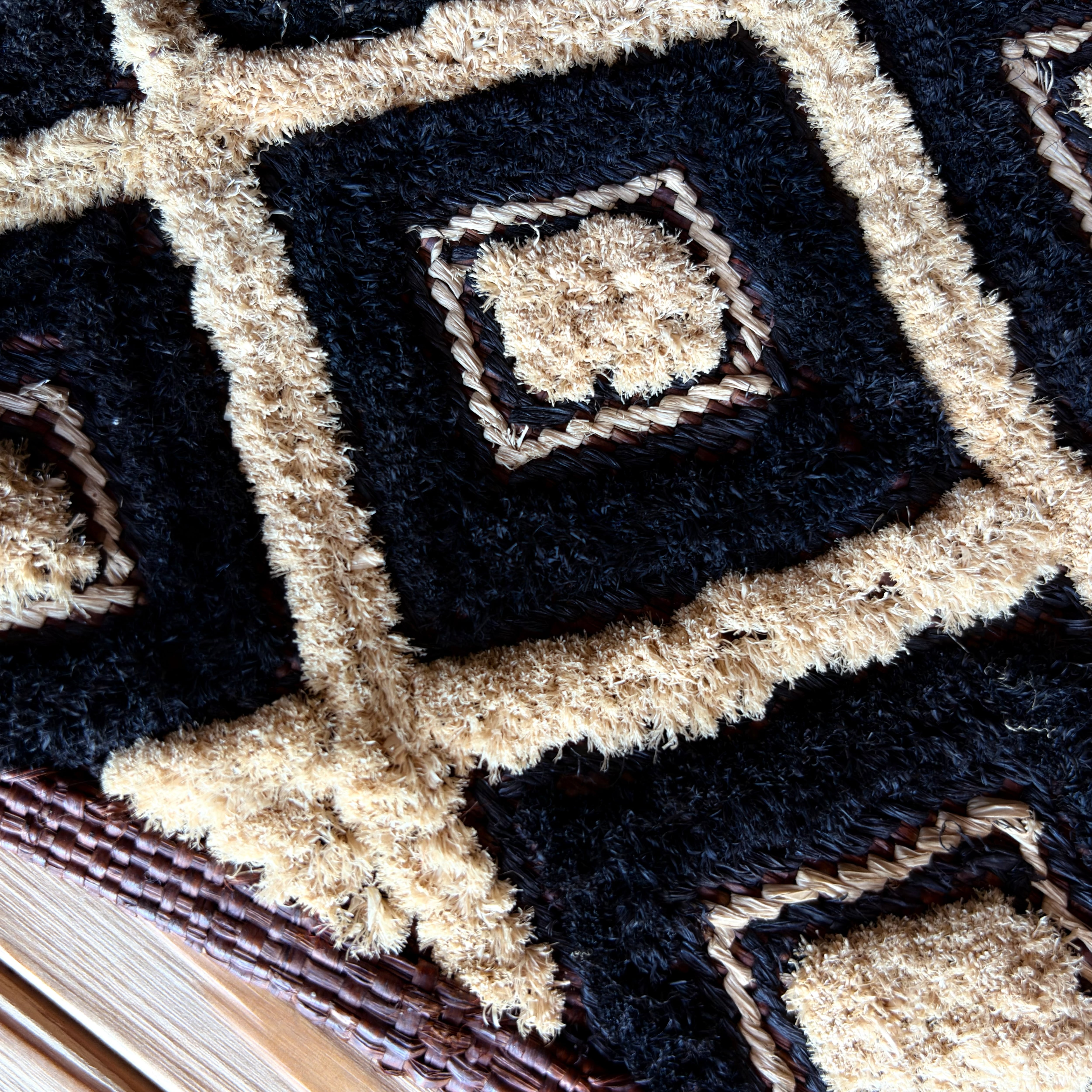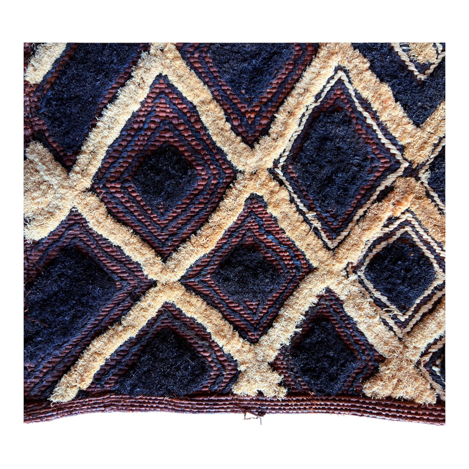 博物館やギャラリーでは、カサイ・ベルベットと呼ばれることが多く、高い地位を象徴する儀礼用織物。模様は、ラフィア繊維を切りそろえるカットパイル技法で仕立てられています。縁や裏は泥染めで仕上げられています。高品質の天然素材を使用しており、軽やかでありながらも丈夫です。様々な用途にお使いいただけ、服飾品やインテリア小物など、あなたの創造力でいろんなことに生かしてくださいね