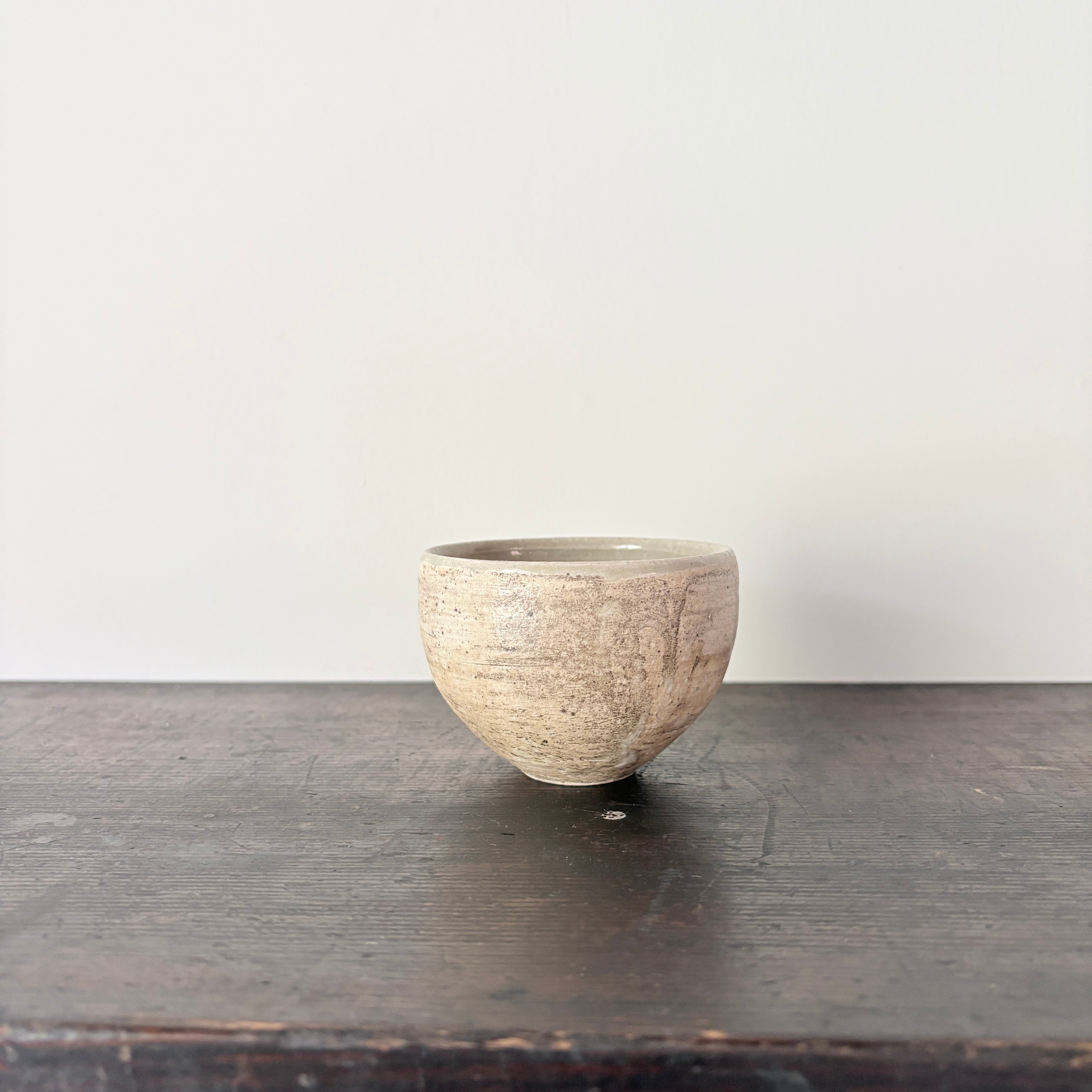 宮崎県で作陶される山脇將人さんの器。カサっとした白樺釉に灰釉が重なり、奥行きのある「枯れた白」の濃淡が生まれています。来客用にもちょうどよい小ぶりの湯呑みです。小鉢などにもどうぞ