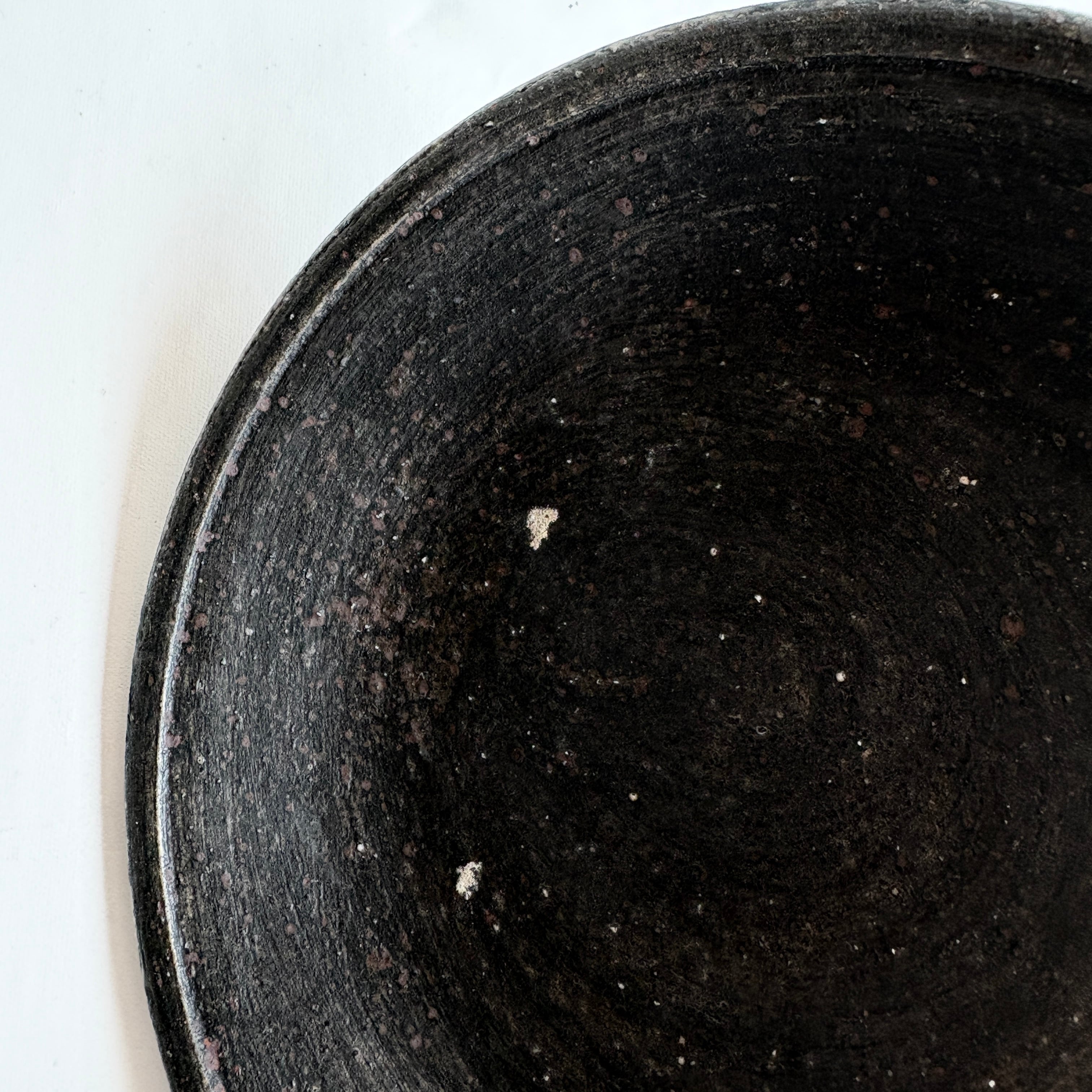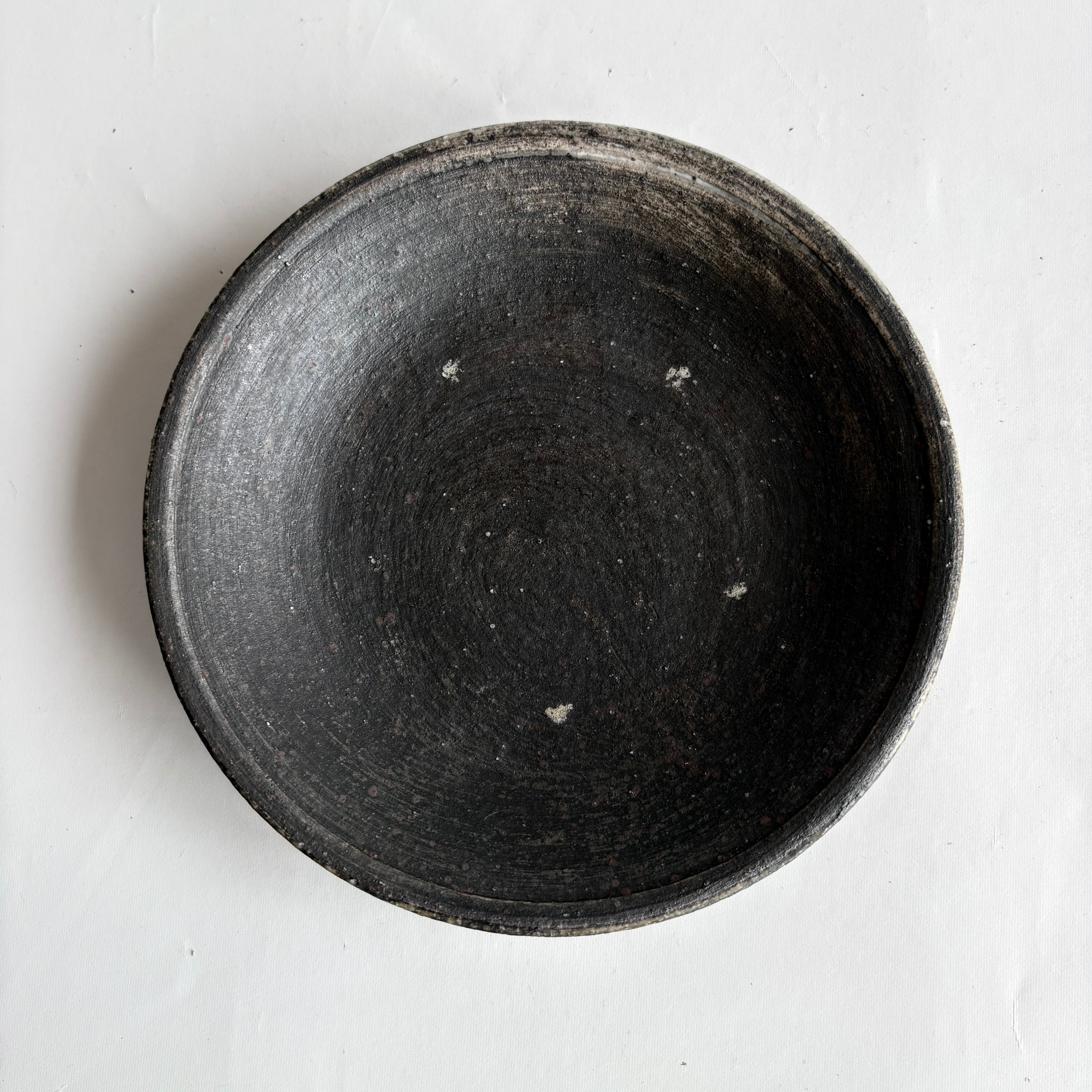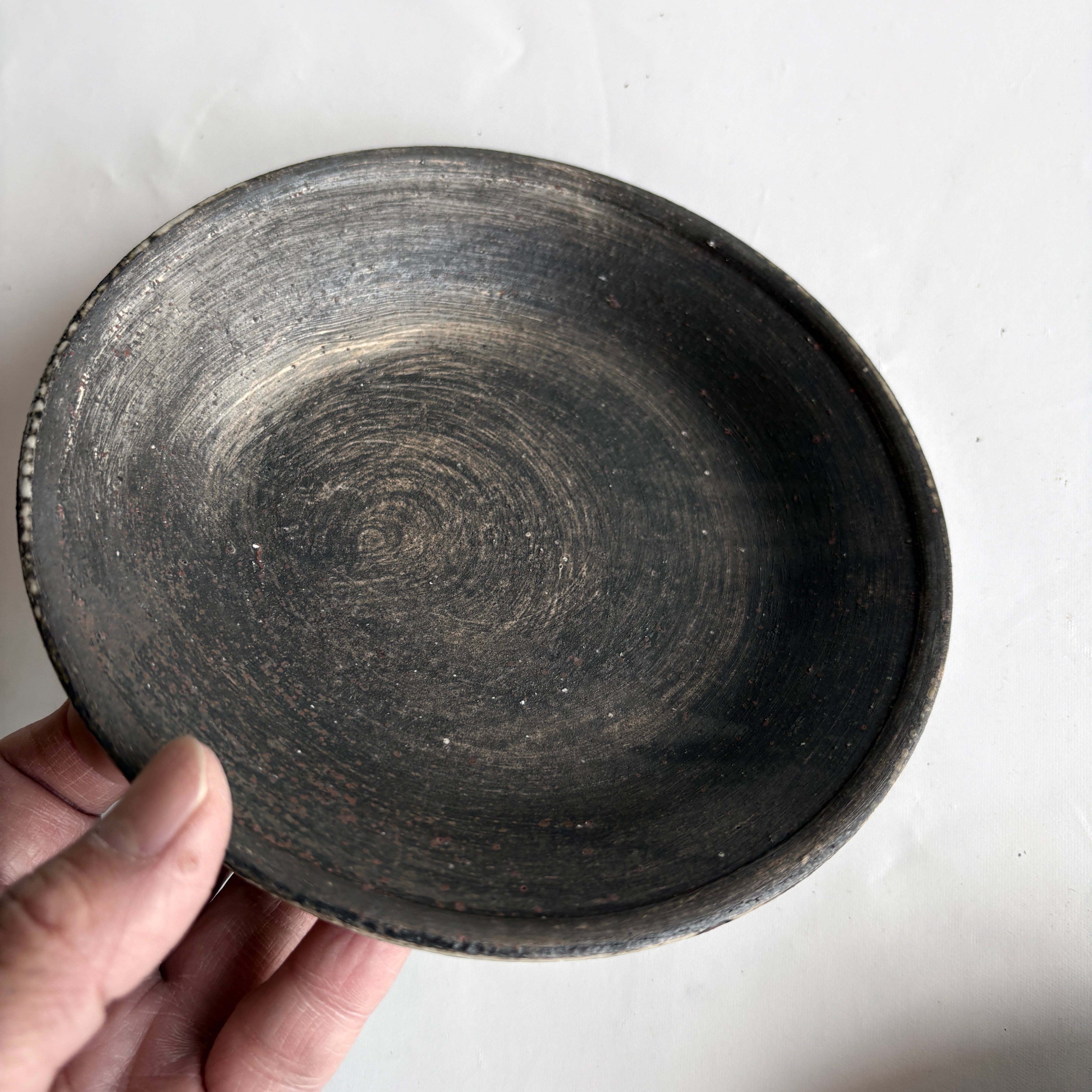 宮崎県で作陶される山脇將人さんの作品。刷毛跡や見え隠れする白がアクセントになった、ブラックに近い落ち着いたお皿。取り皿やデザート皿としてほどよい大きさです