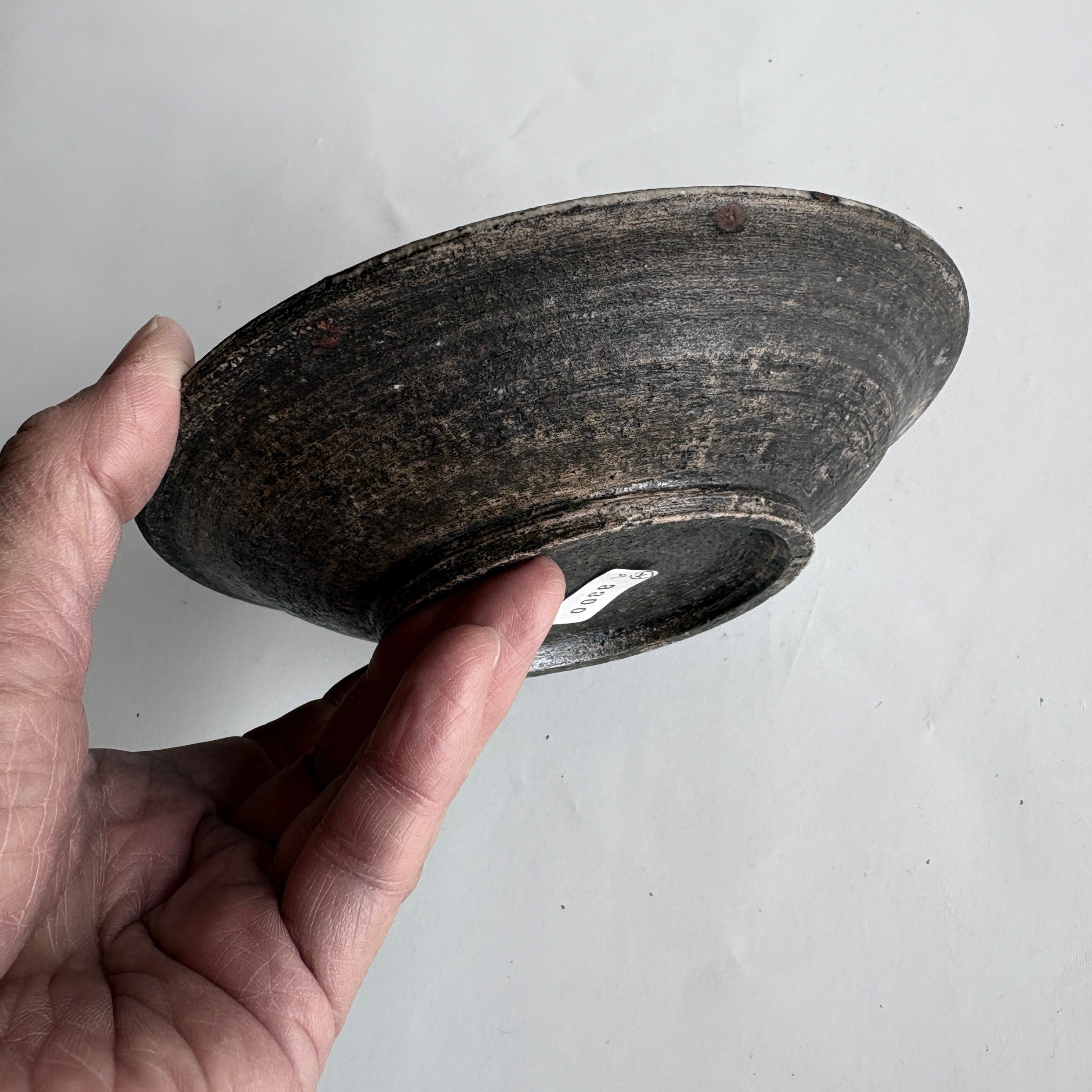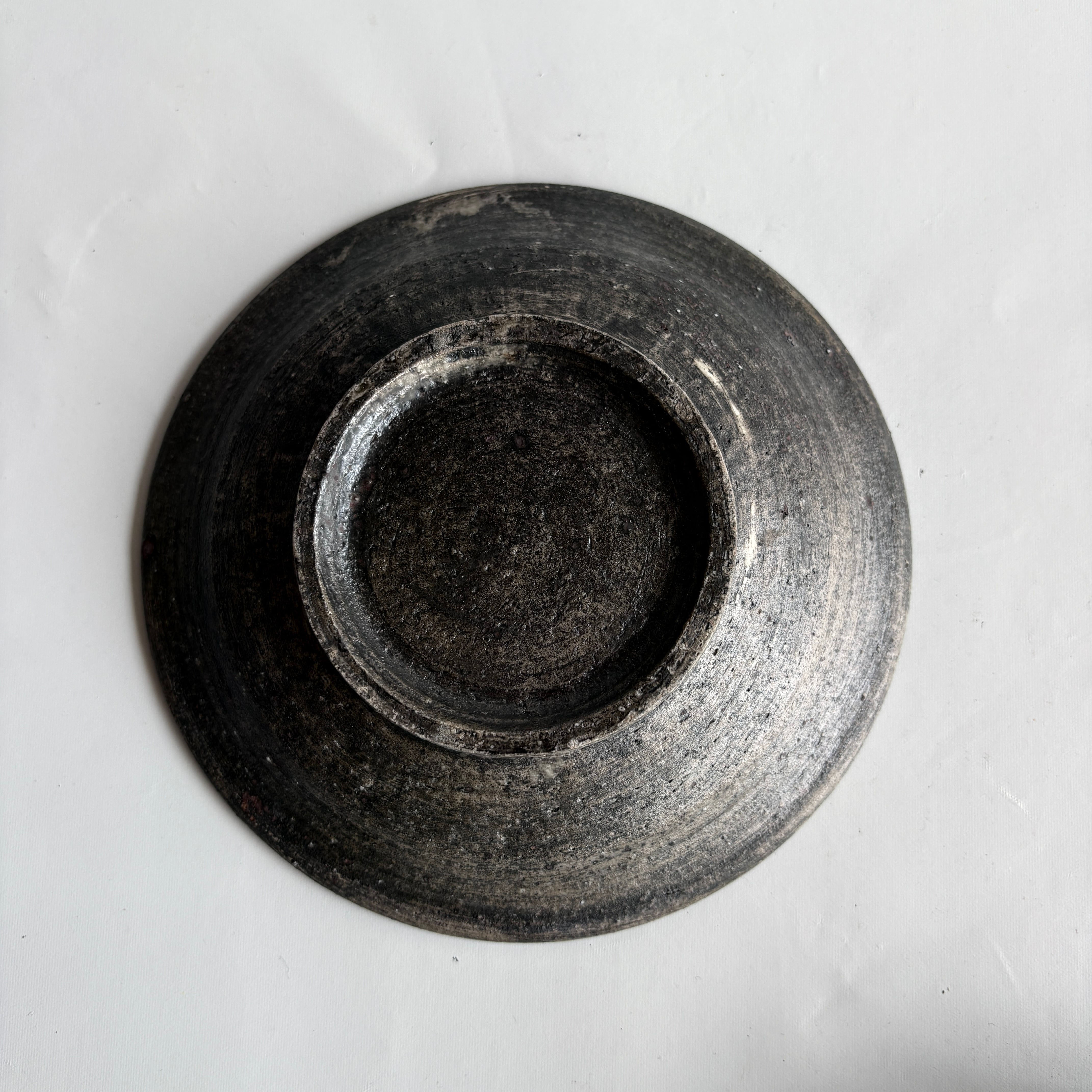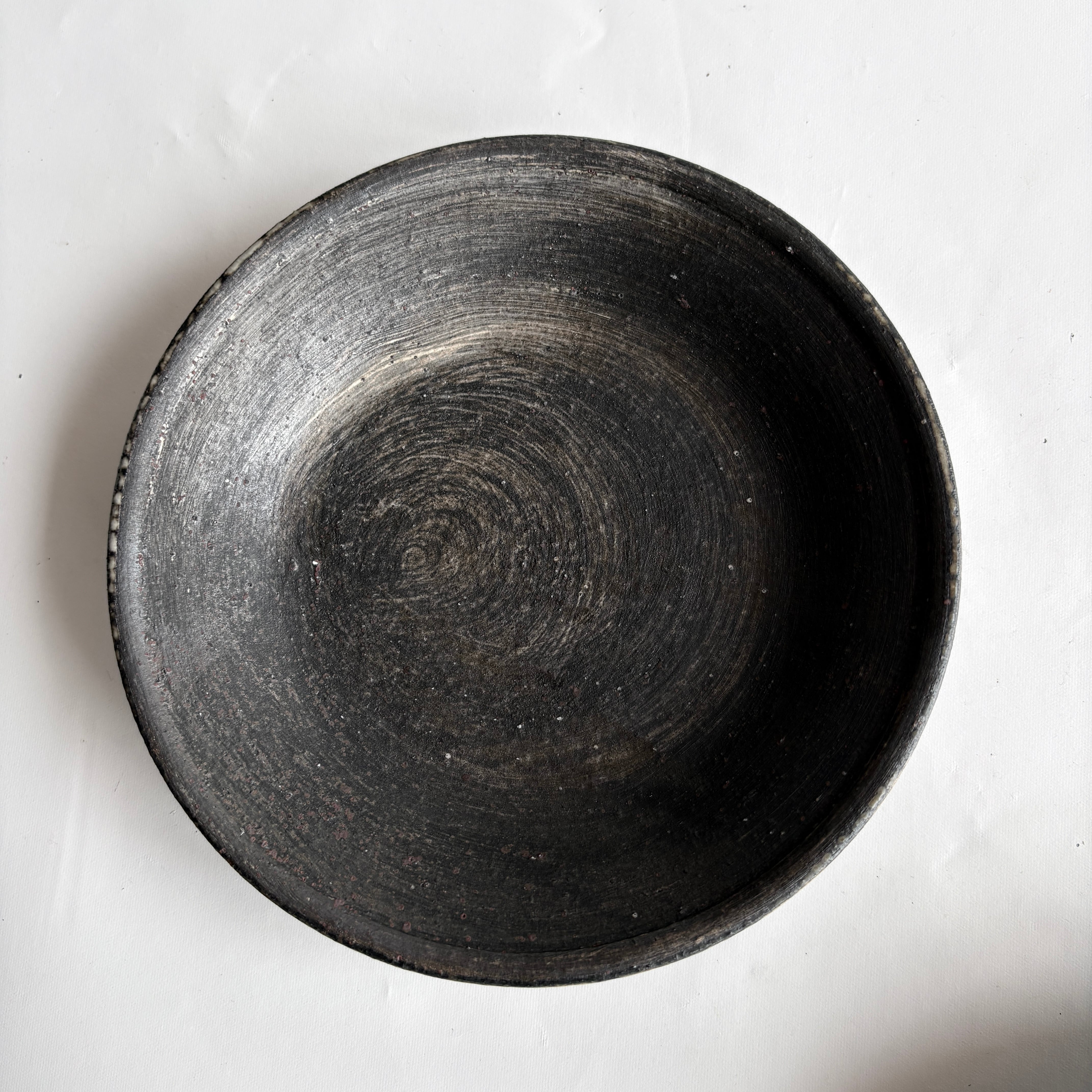 宮崎県で作陶される山脇將人さんの作品。刷毛跡や見え隠れする白がアクセントになった、ブラックに近い落ち着いたお皿。取り皿やデザート皿としてほどよい大きさです