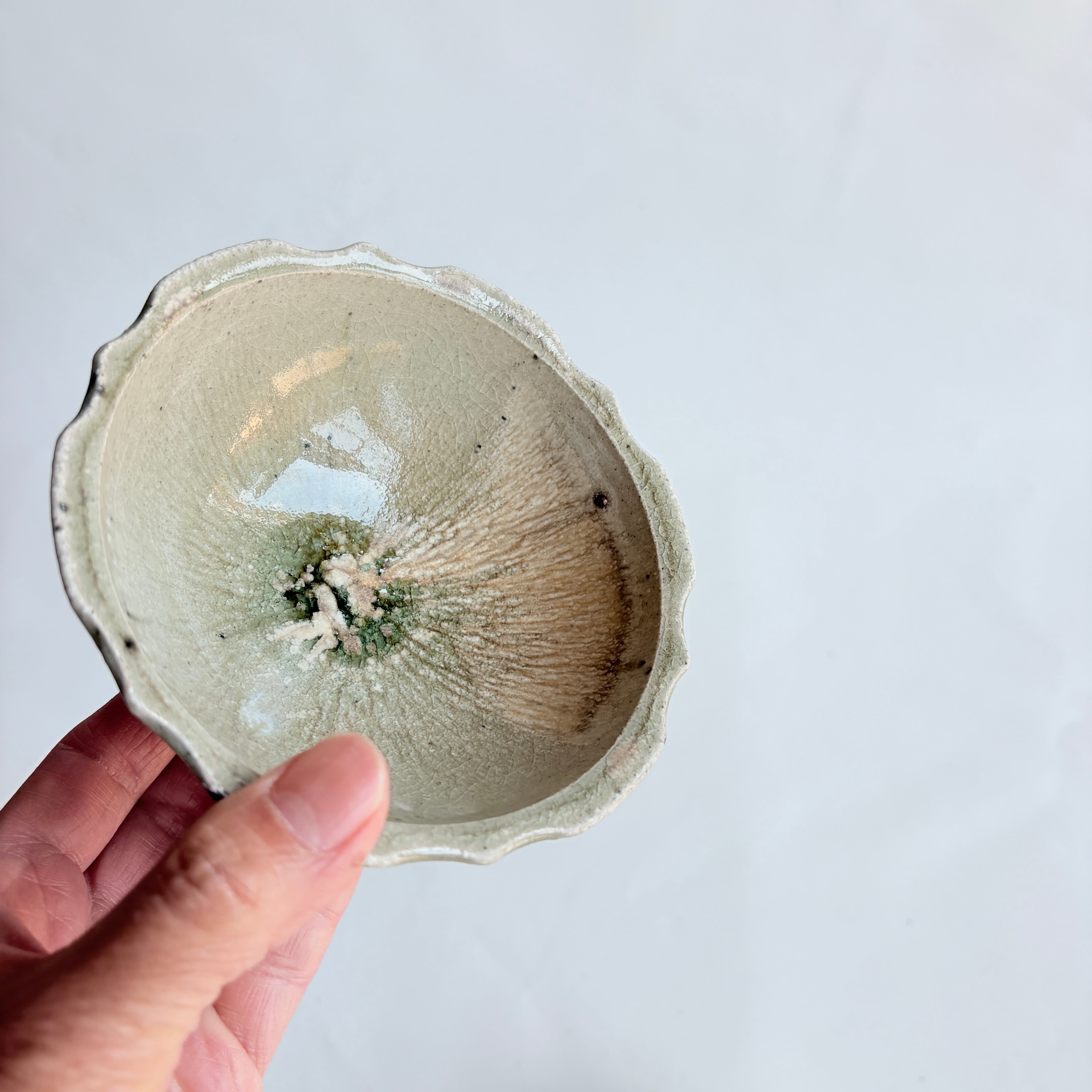 宮崎県で作陶される山脇將人さんの器。口縁の花と高台が付いているので上品に見え、軽やかでとても使いやすいです。見込みにたまった釉薬も美しいですね