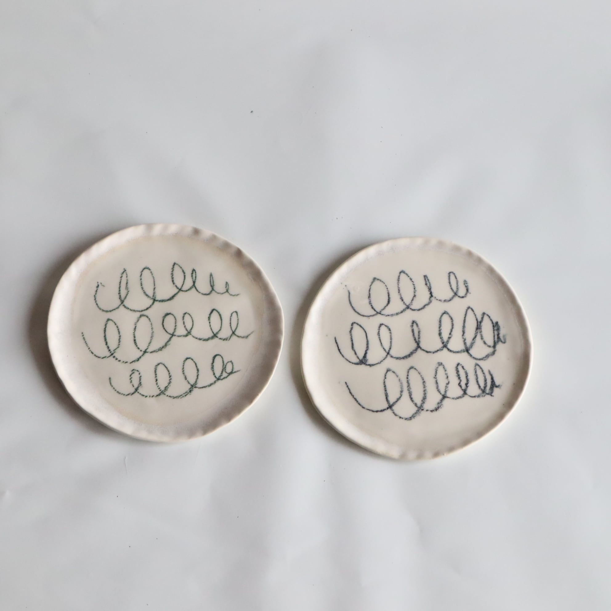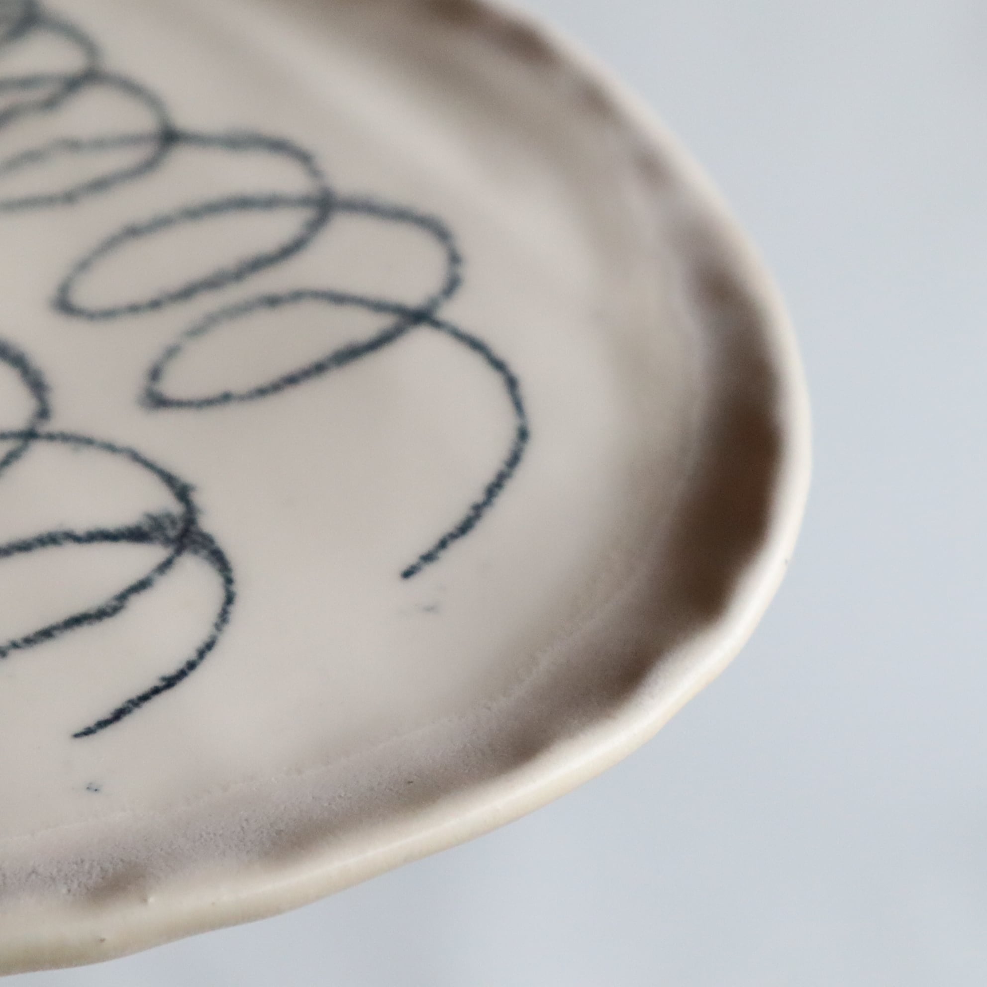 陶芸用チョークで描かれています。使えば使うほど愛着がわいてくる揺らぎや絵付けです